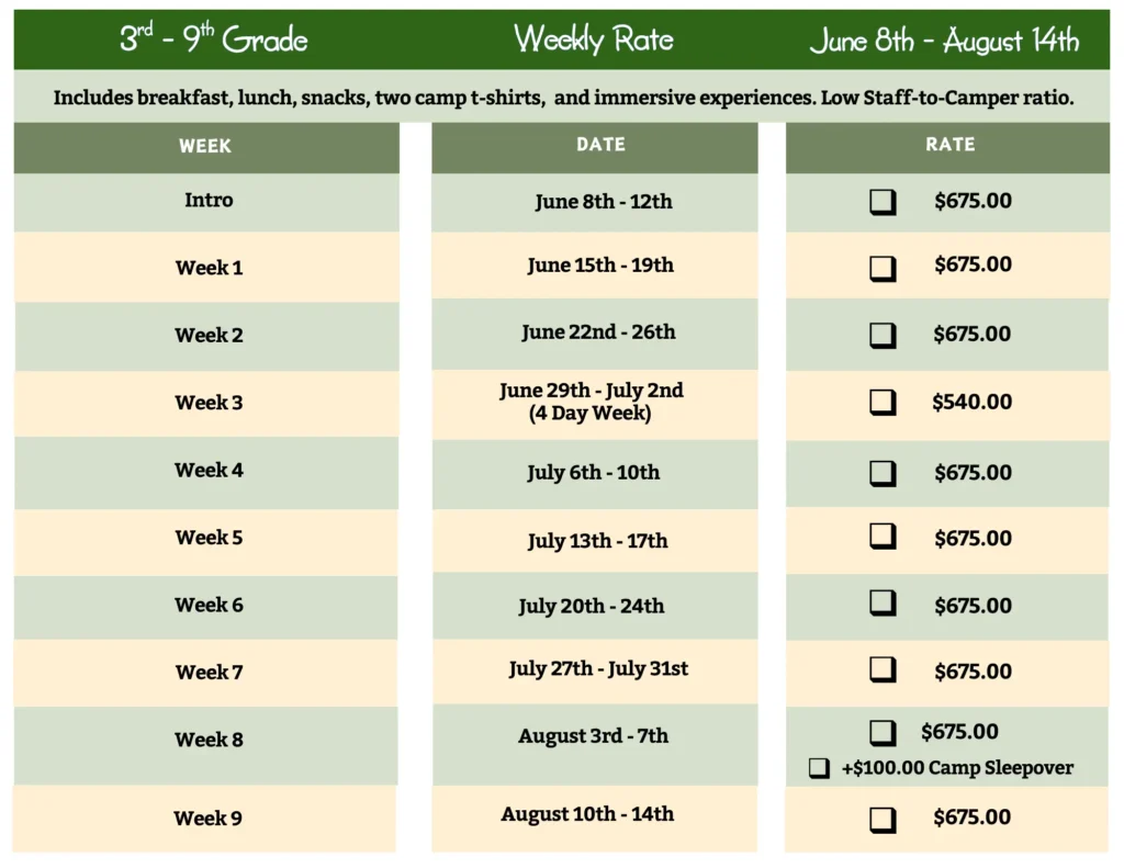 Our camp is different by design. We tailor every specialty experience to each camper in a safe, supportive, and non-competitive environment. Campers entering 3rd through 9th grade choose two adventures per week, allowing them to explore what excites them most while building real skills and confidence.