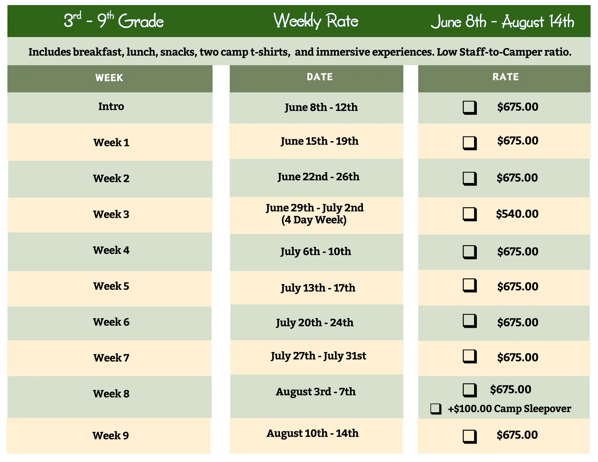 Optional Overnight Sleepover