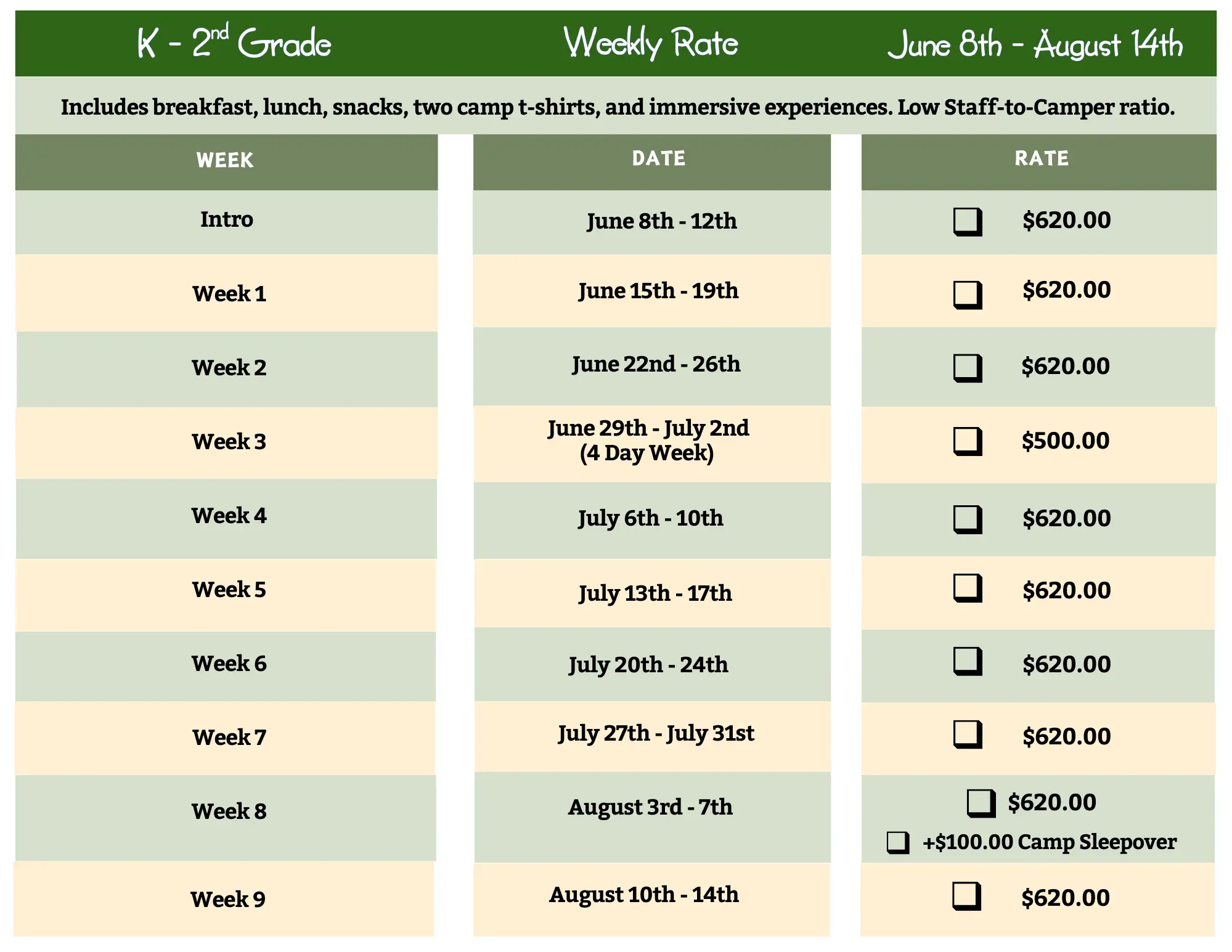 Join us for the ultimate Kids Klub sleepover! The fun doesn’t stop when the lights go down our space transforms into a night full of excitement just for campers. Bring your sleeping bag, pajamas and get ready for games, popcorn, an exclusive camp video, and nonstop laughs with friends. Campers will enjoy a delicious dinner and sweet treats, plenty of surprises along the way, and a cozy night spent making memories that feel just like a classic sleepover Kids Klub style!