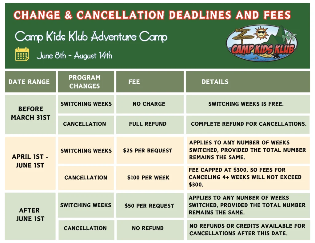 Summer Camp Refund Policy Specialty